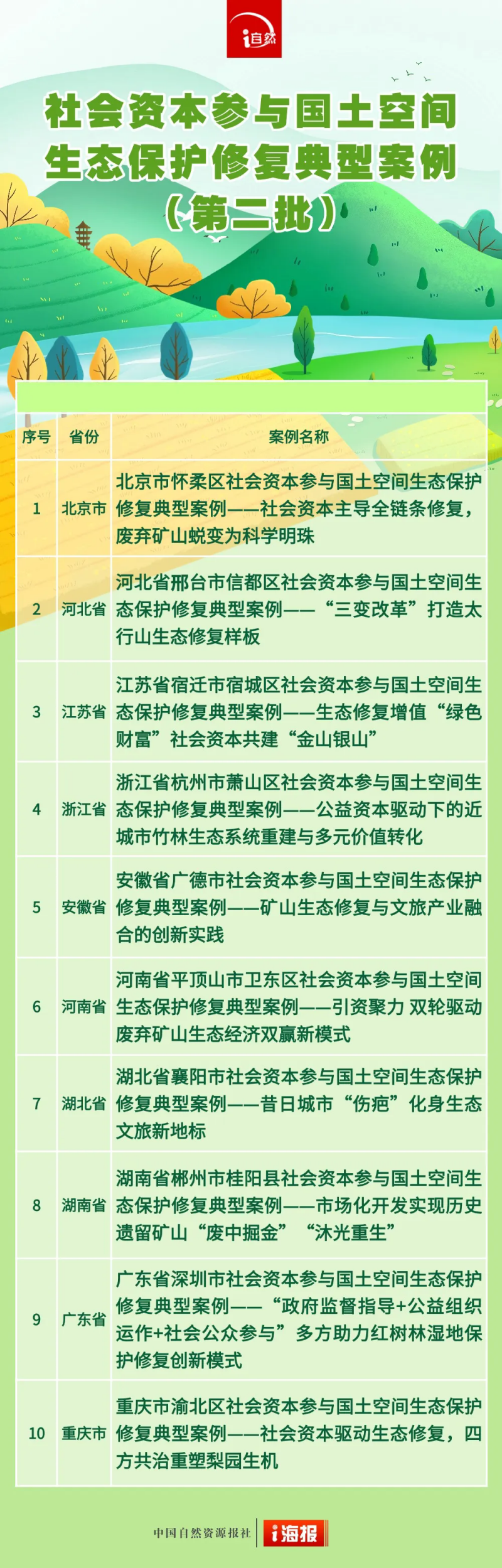 自然資源部公布社會(huì)資本參與國土空間生態(tài)保護(hù)修復(fù)典型案例(第二批)