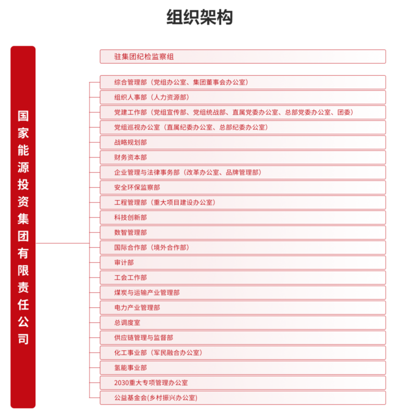 日前,國(guó)家能源集團(tuán)官網(wǎng)改版并更新“組織架構(gòu)”信息。