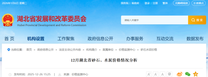 核心提示:近日,湖北省發(fā)改委發(fā)布2025年12月主要建材價(jià)格監(jiān)測數(shù)據(jù)??傮w來看,市場呈現(xiàn)分化態(tài)勢:砂類價(jià)格止跌微漲,而碎石、水泥及混凝土