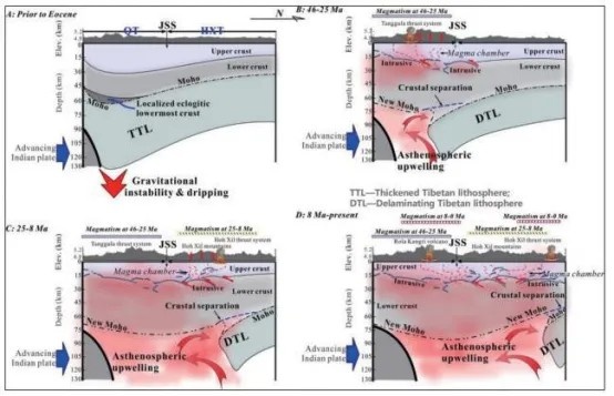 青藏高原中部巖石圈拆沉演化的深部動力學過程