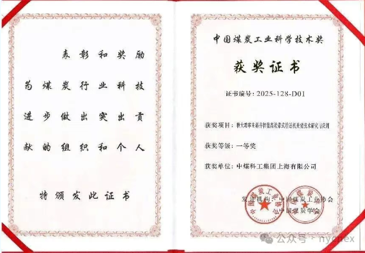 上海煤科6x3150kW帶式輸送機(jī)榮獲2025年度煤炭工業(yè)協(xié)會(huì)科學(xué)技術(shù)一等獎(jiǎng)