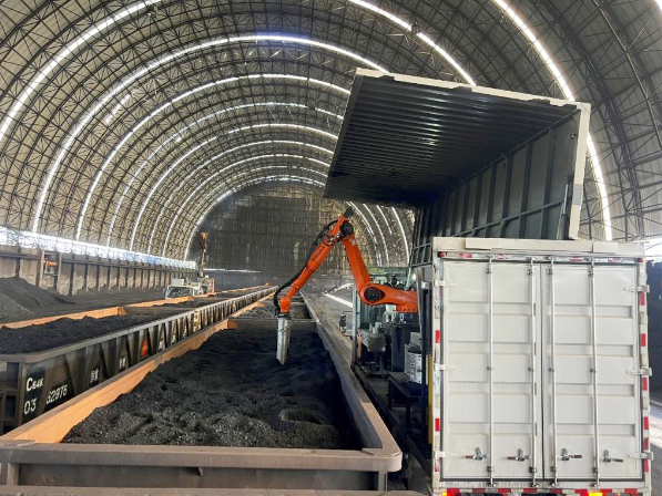 智能車載式煤炭采制樣系統(tǒng)是煤科院基于煤炭集運站和散煤堆場數(shù)智化發(fā)展關鍵應用場景,自主研發(fā)的移動式機器人煤炭采制樣產(chǎn)品。該系統(tǒng)融合了“智能快速盤煤—機器人采樣—在線制樣—煤質(zhì)快速測試—樣品集成與封裝”多功能集成平臺技術,采樣深度可達2米,萬噸列采樣時長不超過1小時,解決了傳統(tǒng)人工采制樣存在的效率低、煤炭代表性差、安全性不足等痛點,實現(xiàn)了整個采制化過程的可視、透明、可控,為煤炭行業(yè)加快數(shù)智化轉型、實現(xiàn)采制化全流程可視可控提供了全新解決方案。目前,已成功應用于國家能源集團神東煤炭集團黃羊城煤炭轉運站,不僅顯著提高了企業(yè)煤炭樣品采集、制備的智能化水平,還可加快煤炭流通速度,提高周轉率,為企業(yè)創(chuàng)造更大的經(jīng)濟效益。