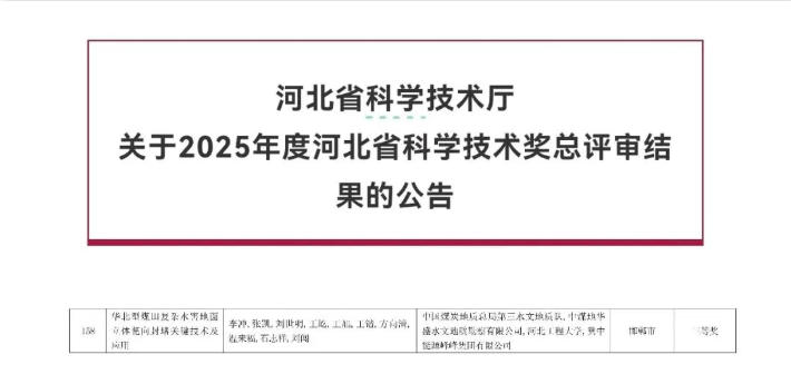 “華北型煤田復(fù)雜水害地面立體靶向封堵關(guān)鍵技術(shù)”突破關(guān)鍵技術(shù)瓶頸,實(shí)現(xiàn)年度解放受水害威脅的煤炭資源量1.02億噸,該技術(shù)獲得河北省科學(xué)技術(shù)進(jìn)步獎(jiǎng)。