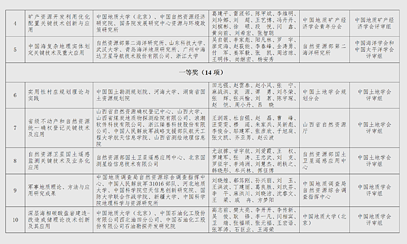 自然資源部關(guān)于2022年度自然資源科學技術(shù)獎獲獎成果的公告2023年第64號