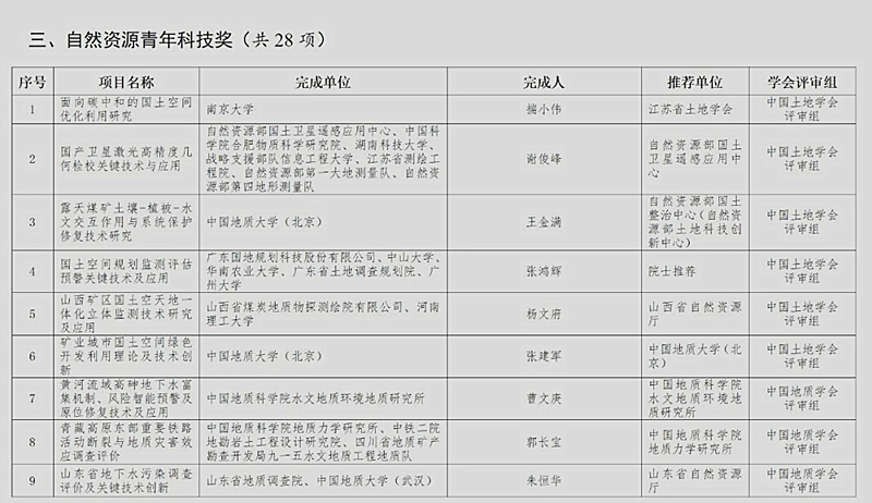 2022年度自然資源科學技術(shù)獎獲獎成果公布