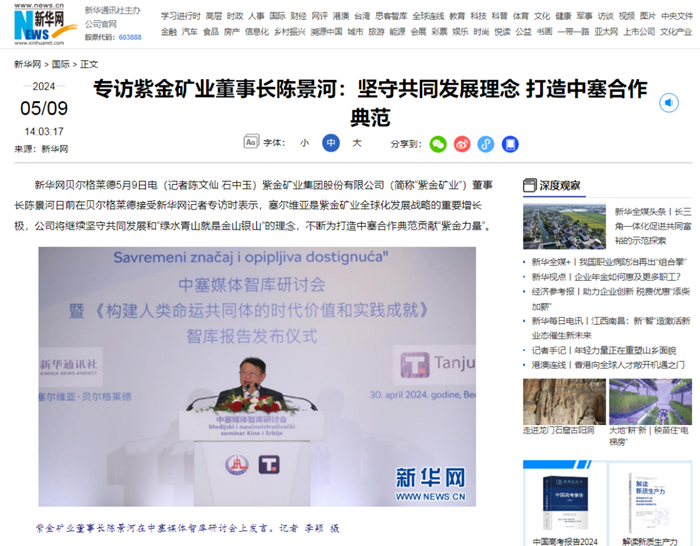 5月9日,新華網(wǎng)發(fā)布陳景河董事長專訪,高度評價紫金接手博爾銅礦后為當(dāng)?shù)貛淼母淖?。塞爾維亞國家廣播電臺也對紫金聚焦環(huán)保和安全技術(shù),投資23億美元建設(shè)佩吉銅金礦這座塞爾維亞首座綠色礦山給博爾帶來的巨大變化,給予高度評價。報(bào)道稱,“博爾不再是一個環(huán)保黑點(diǎn),它的每一點(diǎn)進(jìn)步都有目共睹?!?/p>