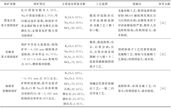 Table 3 Comparison of feldspar recovery process from molybdenum tailings