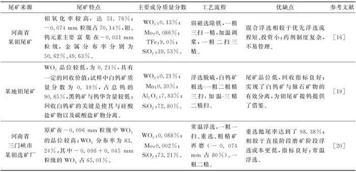 Table 2 Comparison of tungsten recovery process from molybdenum tailings