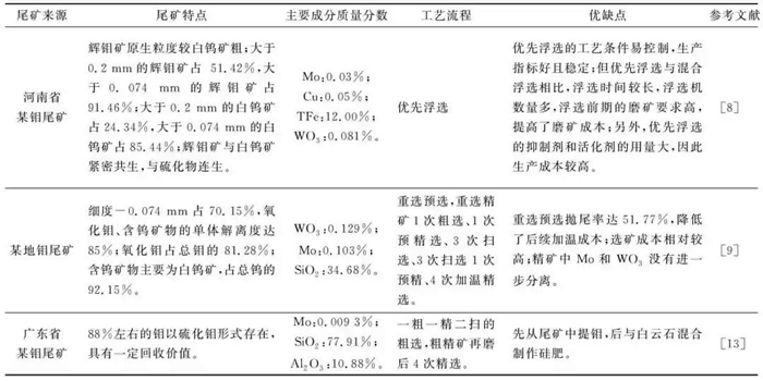 1 鉬尾礦中有價(jià)礦物回收研究現(xiàn)狀