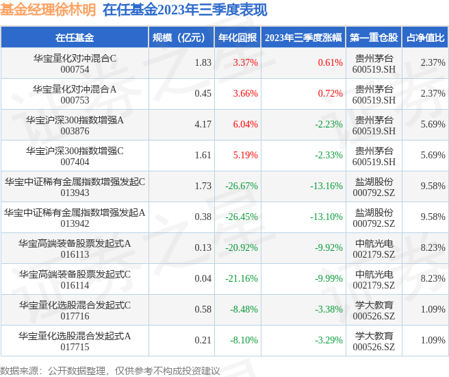 華寶中證稀有金屬指數(shù)增強(qiáng)發(fā)起C現(xiàn)任基金經(jīng)理為徐林明 莊皓亮。其中在任基金經(jīng)理徐林明已從業(yè)14年又31天,2021年12月15日正式接手管理華寶中證稀有金屬指數(shù)增強(qiáng)發(fā)起C,任職期間累計(jì)回報(bào)為-43.89%。目前還管理著10只基金產(chǎn)品(包括A類和C類),其中本季度表現(xiàn)最佳的基金為華寶量化對(duì)沖混合A(000753),季度凈值漲幅為0.72%。