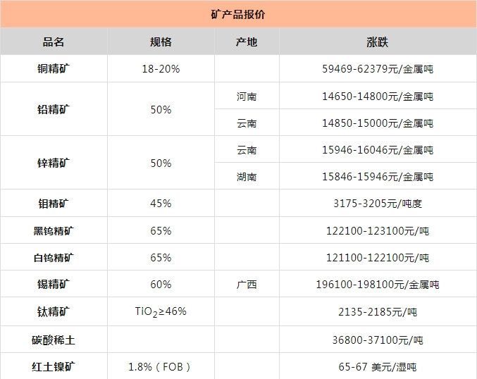 科礦|2月6日金屬、礦產(chǎn)品及非金屬現(xiàn)貨行情報(bào)價(jià)單