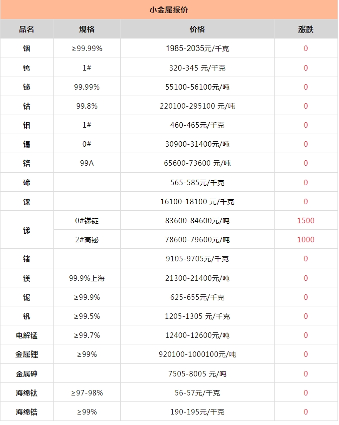 科礦|2月9日金屬、礦產(chǎn)品及非金屬現(xiàn)貨行情報(bào)價(jià)單