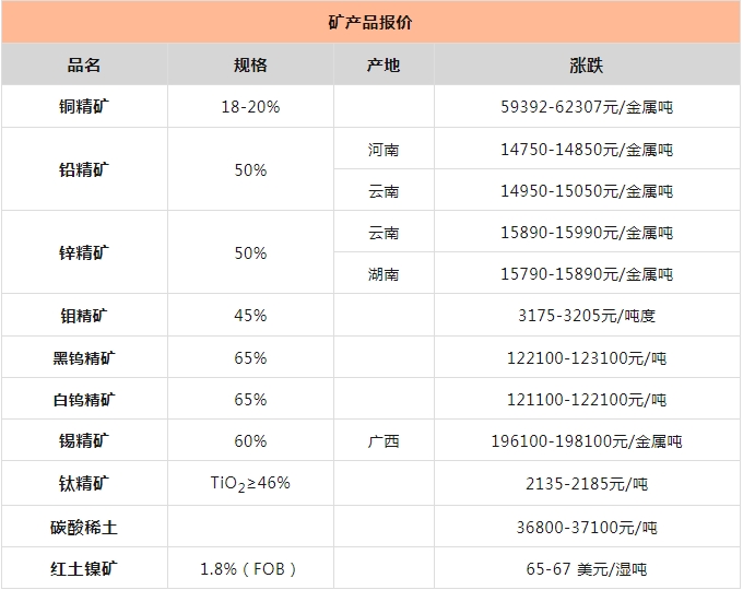 礦產(chǎn)報(bào)價(jià)、資訊