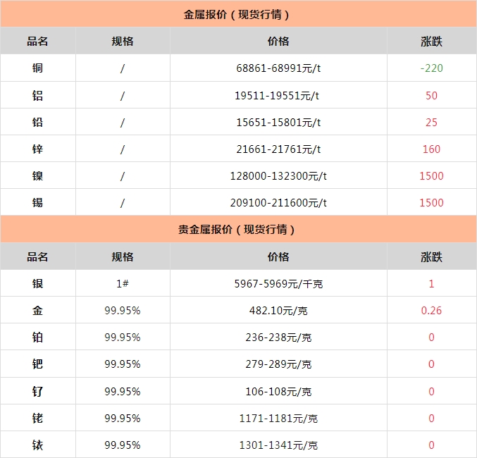 科礦|2月6日金屬、礦產(chǎn)品及非金屬現(xiàn)貨行情報(bào)價(jià)單