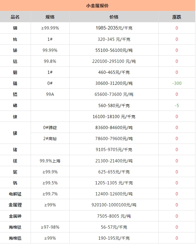 科礦|2月9日金屬、礦產(chǎn)品及非金屬現(xiàn)貨行情報(bào)價(jià)單