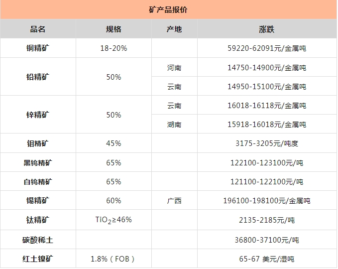 1月3日金屬、非金屬礦產(chǎn)品報(bào)價(jià)