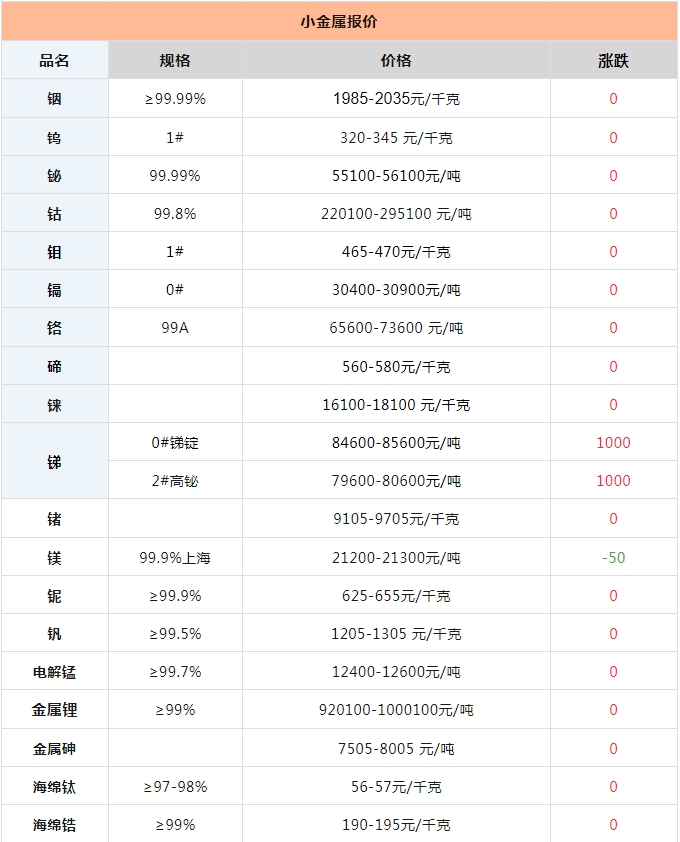 科礦|2月24日金屬、礦產(chǎn)品及非金屬現(xiàn)貨行情報價單