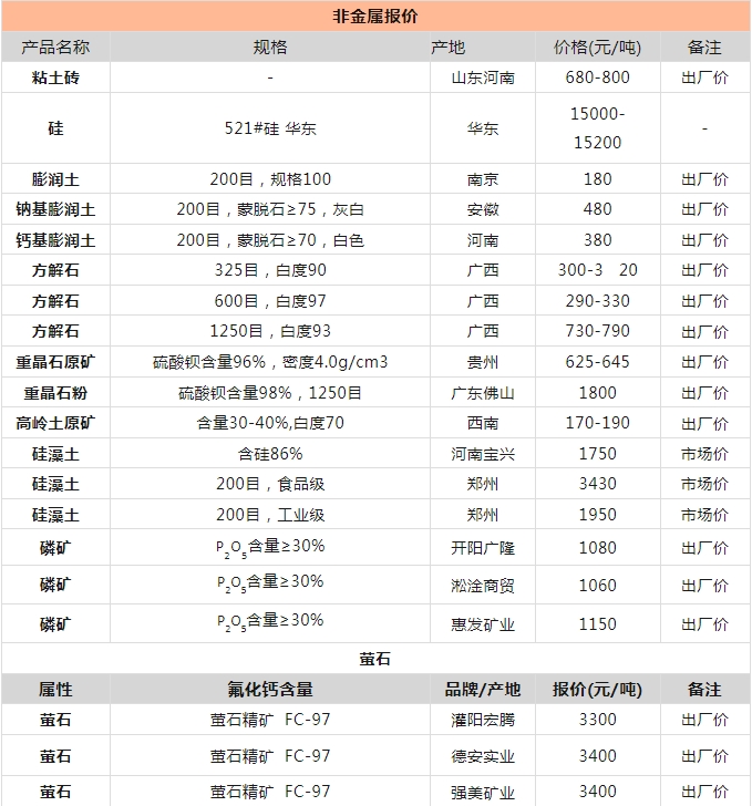 1月5日金屬、非金屬礦產(chǎn)品報價