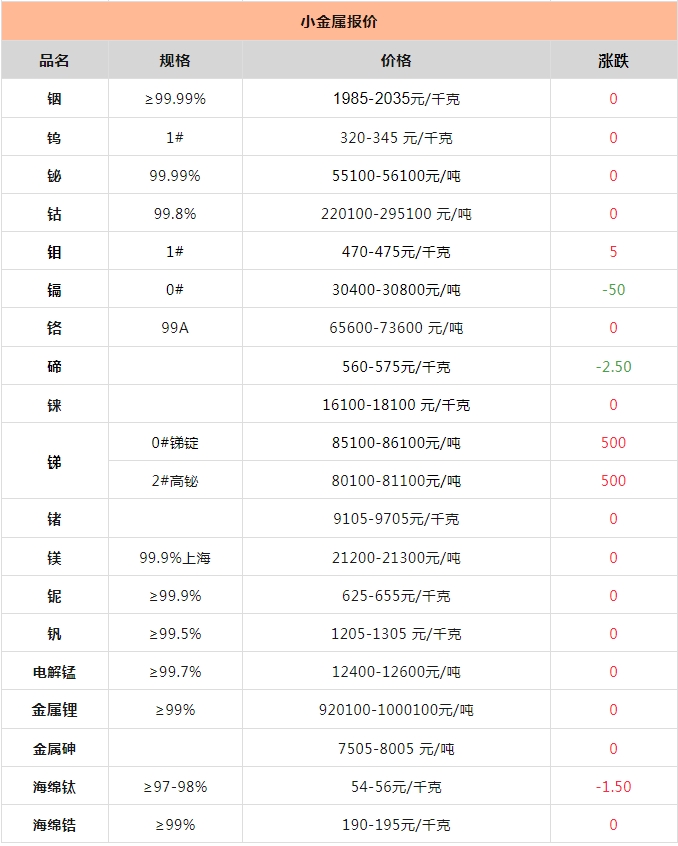 科礦|2月6日金屬、礦產(chǎn)品及非金屬現(xiàn)貨行情報(bào)價(jià)單