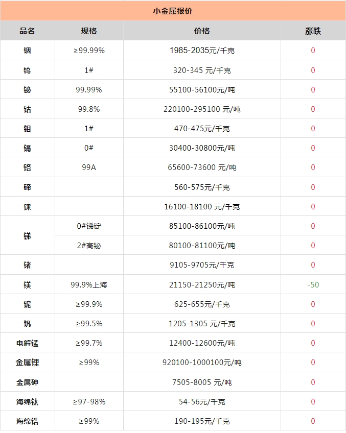 科礦|2月13日金屬、礦產(chǎn)品及非金屬現(xiàn)貨行情報(bào)價(jià)單