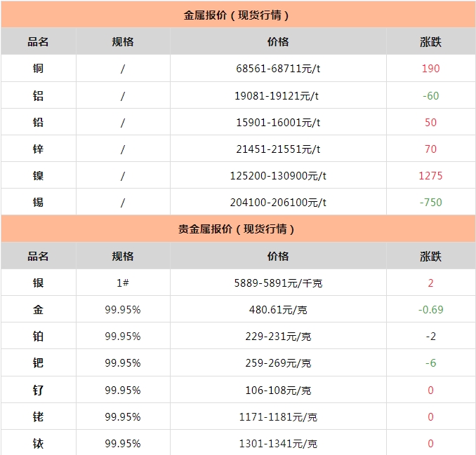 1月9日金屬、非金屬礦產(chǎn)品報(bào)價(jià)