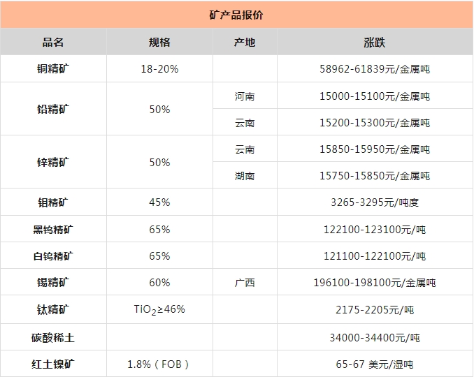 礦產(chǎn)報(bào)價(jià)、資訊