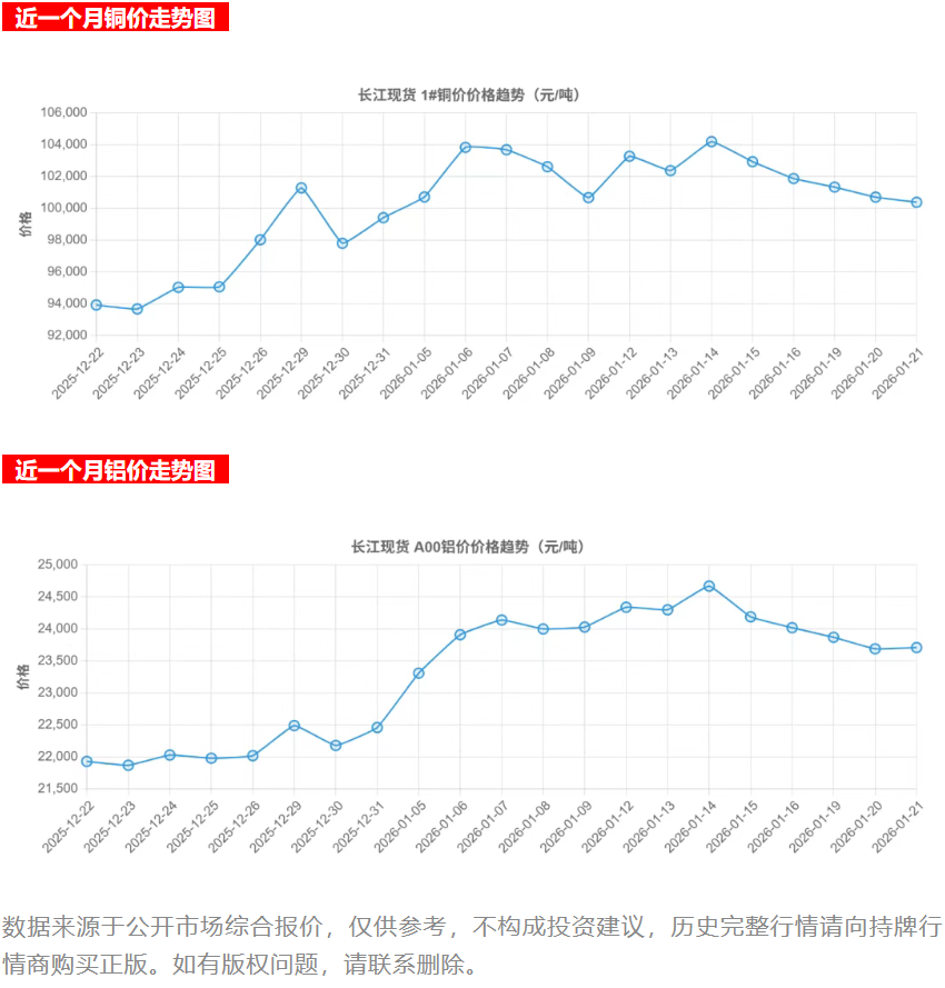 A00鋁價:23710元/噸,漲20元/噸 廣東現(xiàn)貨 1#銅價:100220元/噸,跌320元/噸