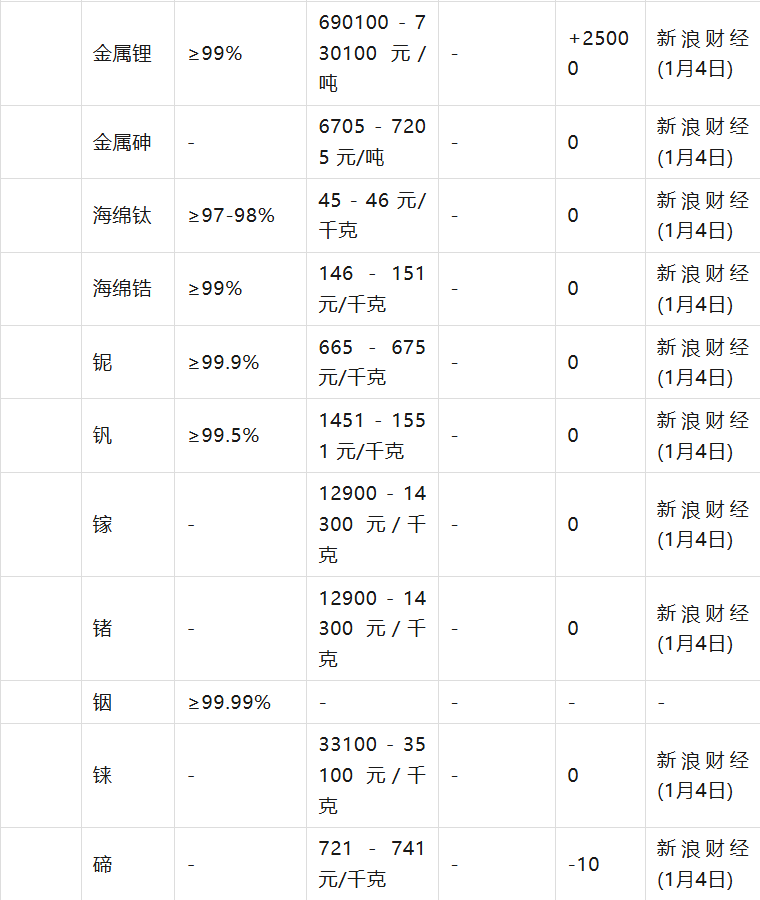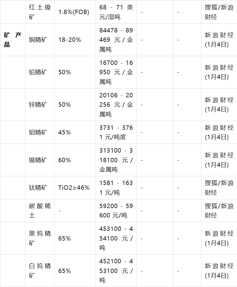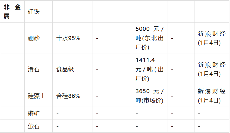科礦|2月2日金屬、礦產(chǎn)品及非金屬現(xiàn)貨行情報(bào)價(jià)單