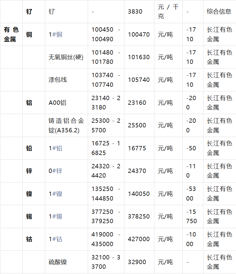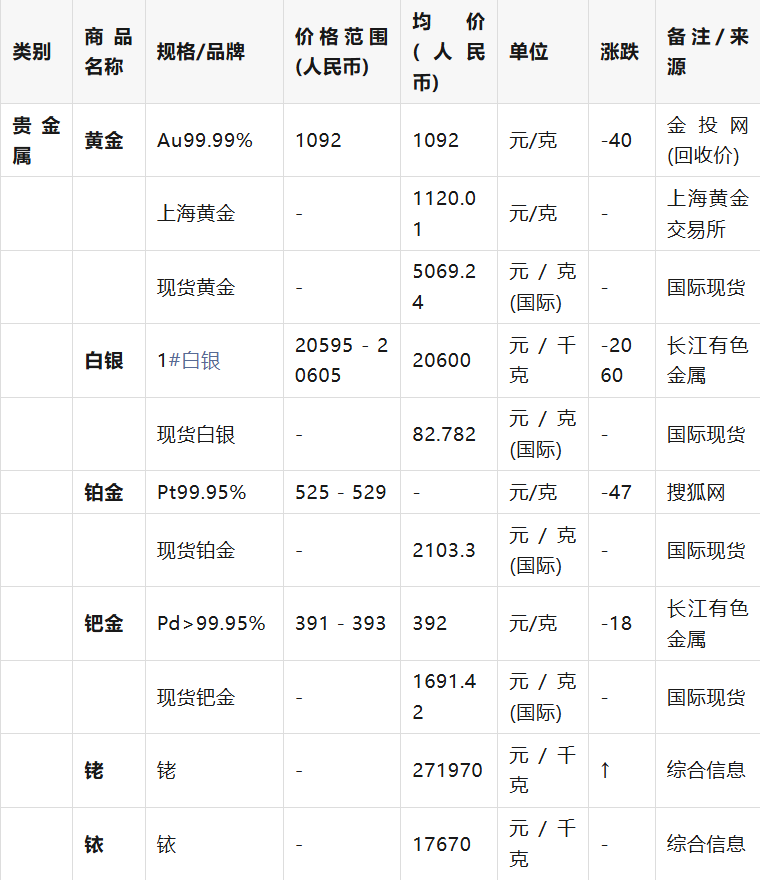 :數(shù)據(jù)綜合整理自金投網(wǎng)、長(zhǎng)江有色金屬網(wǎng)、上海黃金交易所、同花順財(cái)經(jīng)、搜狐等公開(kāi)信息渠道。注:網(wǎng)絡(luò)整理,不構(gòu)成投資建議。